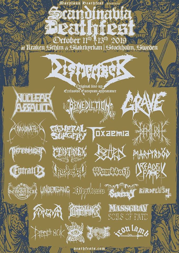 - 10/13/2019 - Scandinavia Deathfest 2019: Dismember, Dreadful Fate, Grave, Impure, Vanhelgd at Kraken Sthlm in Stockholm, SWE